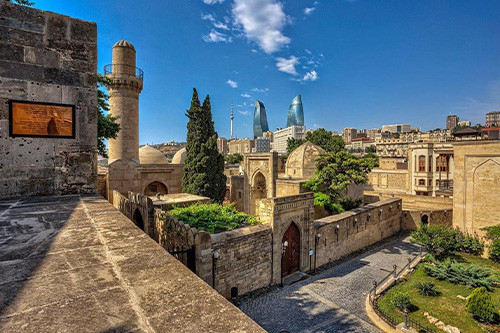 For lunch, enjoy the picturesque “Old Garden” restaurant in the Old Town, where you'll savor the national dish "Saj" cooked on coals, accompanied by Old Garden salad, soft drinks, and tea with sweets. Afterward, begin the Old Town (Icherisheher) Tour with your professional English-speaking guide. Discover the rich history and architecture with sights such as the Maiden's Tower, the ruins of the Chapel of St. Bartholomew, the hammam of Haji Baani, and the caravanserais of Multani and Bukhara. Explore the Sailors House, the Chained House, the Residence of the Baku Khans, and the Double Gates of the Old City. Marvel at the fortress walls, the Quadrangular Tower, the Aliaga Vahid monument, the Juma mosque, and the Palace of Shirvanshahs. Visit the location where the iconic scene from the movie "The Diamond Hand" was shot, where Nikulin fell and loudly shouted, “God damn it!”