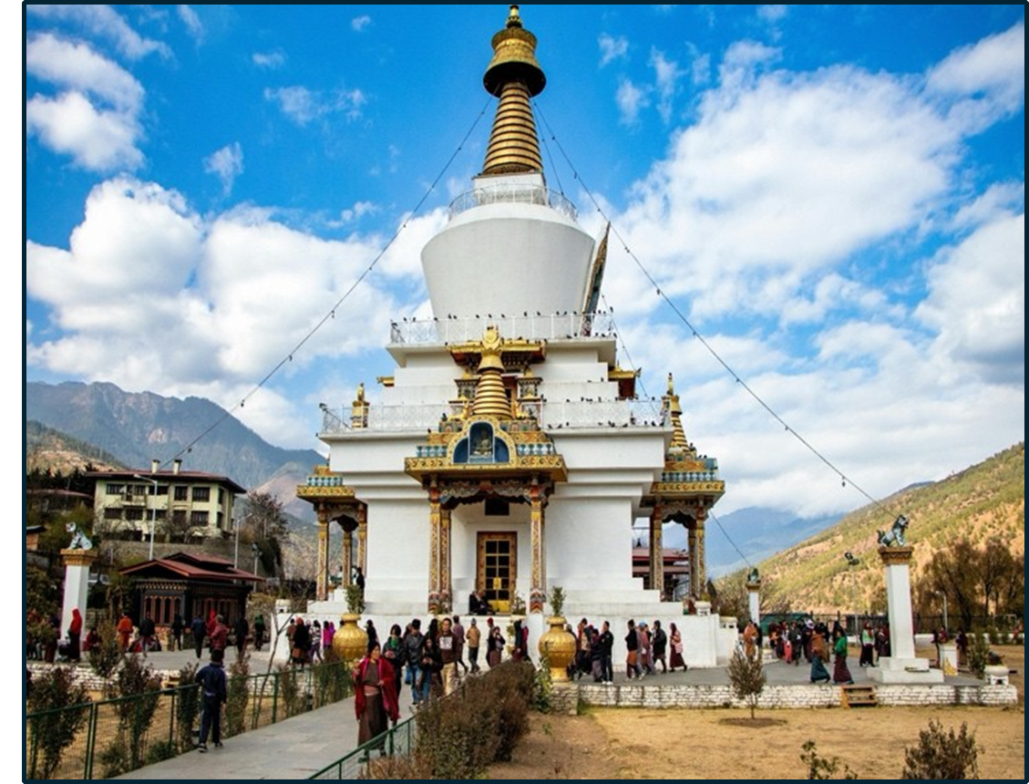 Thimphu and Punakha in Bhutan, stands at an elevation of 3,100 meters. Adorned with 108 chortens, it serves as a poignant tribute to Bhutanese soldiers who sacrificed their lives. Beyond its historical significance, Dochula Pass offers travelers breathtaking panoramic views of the majestic Himalayan ranges on clear days. The site's serene ambiance, often enveloped in mist, invites visitors to pause and reflect amidst fluttering prayer flags. Dochula Pass is not just a gateway between two cities; it's a symbolic landmark encapsulating Bhutan's cultural heritage, natural beauty, and the spirit of reverence and remembrance.