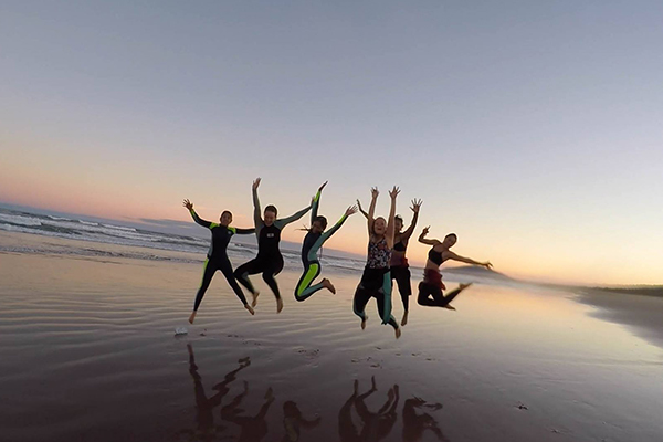 This 5 day Ultimate Surf Camp includes surfing lessons every day and is designed for beginners. You’ll be taught everything you need to know – paddling, standing up, dropping into waves and riding across them. Accommodation is just minutes from the beach! Sleep in comfy cabins with hot showers, internet and a pool. All meals are included. Surfing makes you hungry and you’ll be provided plentiful, tasty and healthy meals to meet your appetite. Every day is a laugh at Surf Camp. The daily (free!) photos and videos always make for an entertaining evening.